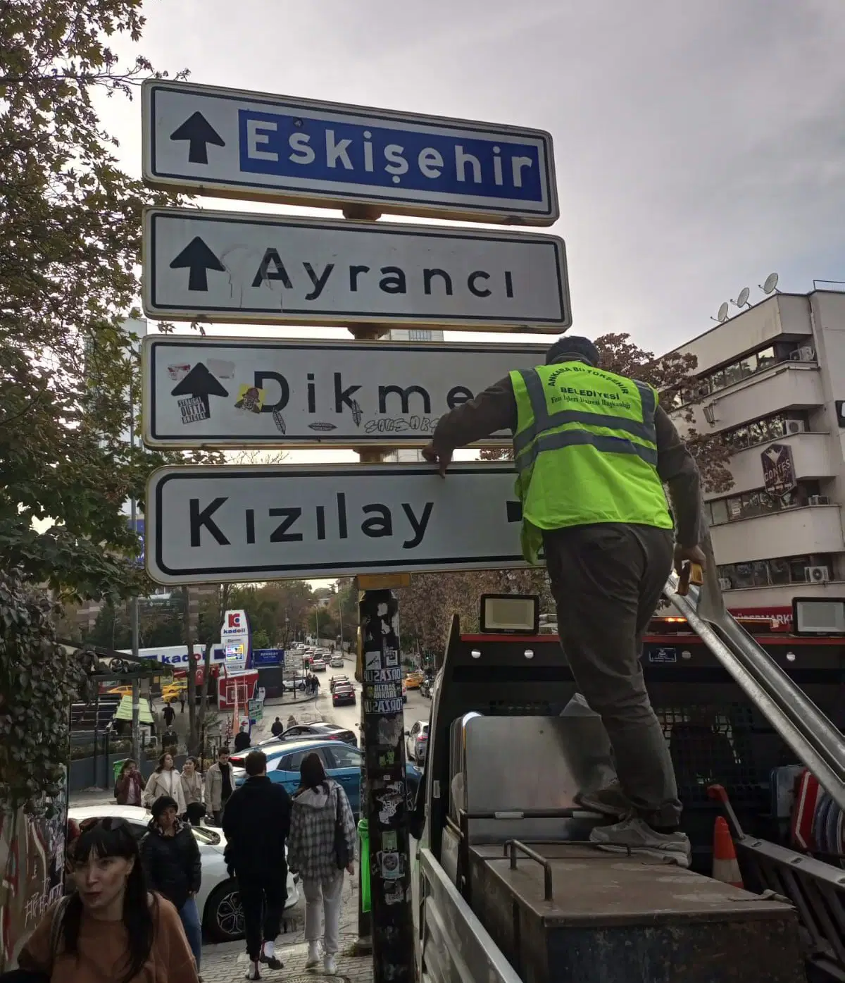 Ankara’nın Çankaya ilçesi Kennedy Caddesi’nde bulunan ‘Kızılay’ yazılı yön tabelasına asılarak, fotoğraf çektirip paylaşmak gençler arasında akım haline geldi. Ancak tabela bir süre sonra çalındı. Belediye tabelayı yenilerken, gençler yenisiyle de fotoğraf çektirmeye devam ediyor. Polis, yeni bir hırsızlık olayına karşı bölgede önlem aldı.